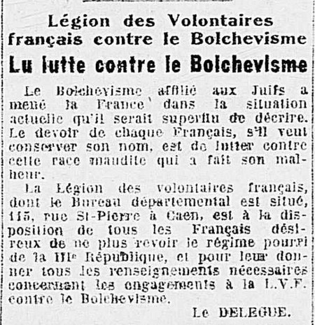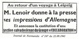 - 2 septembre 1941 article de La Presse Caennaise pour recruter