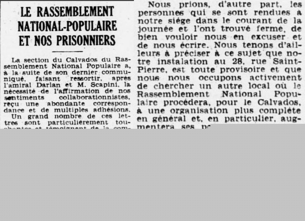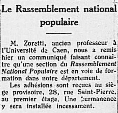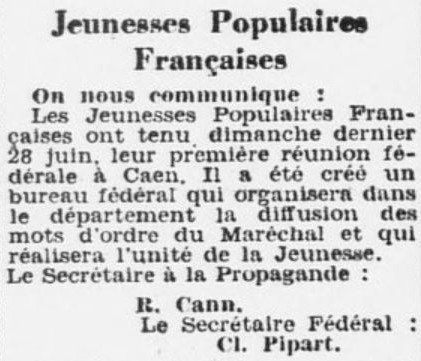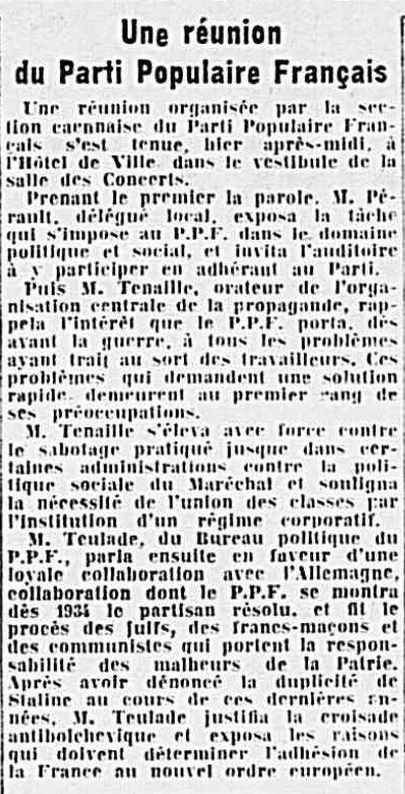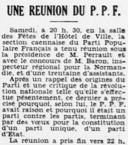 - Journal de Normandie du 9 octobre 1941. Réunion du PPF. Contrairement à ce qu'il était dit cette réunion ne sera pas contrdictoire. Il fallait lire: Une réunion publique et d'entrée libre.