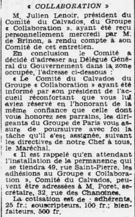 calvadosienne du "Groupe Collaboration" à l'initiative de