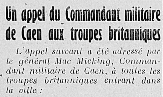 Le commandant militaire de Caen est le général Neil Mc Micking