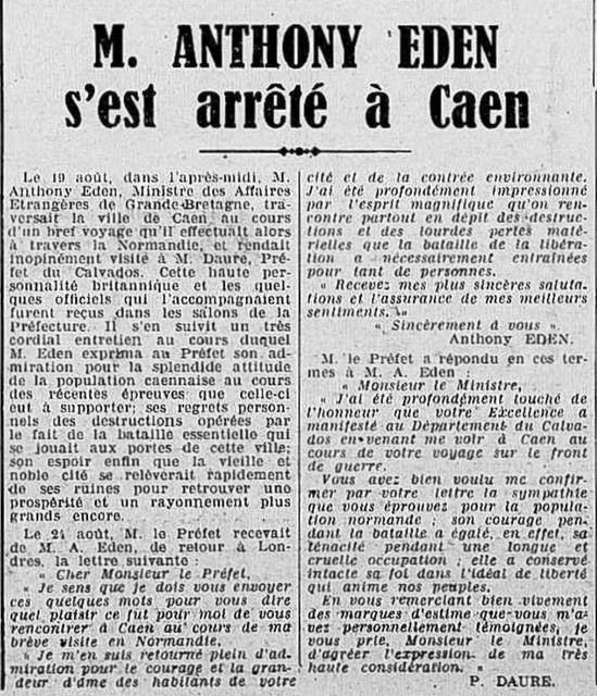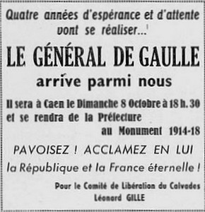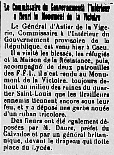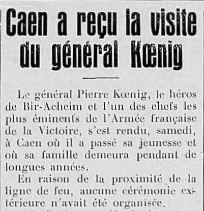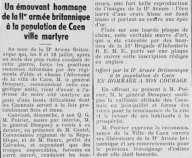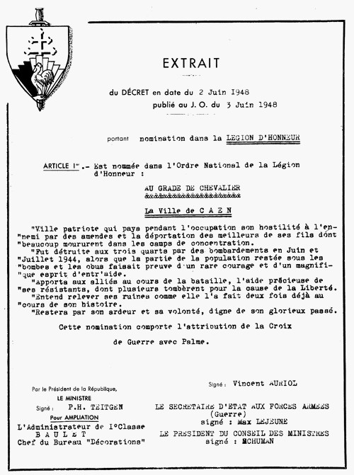 Le 3 juin 1948, la ville de Caen est nommée dans l'Ordre