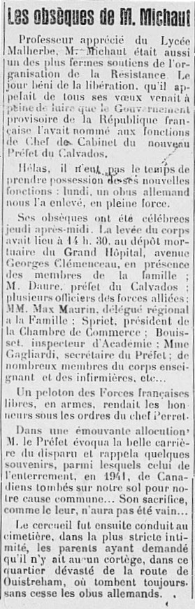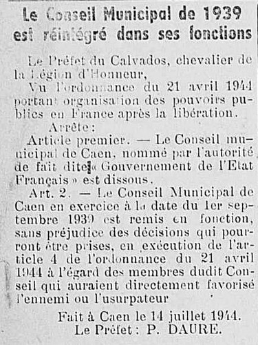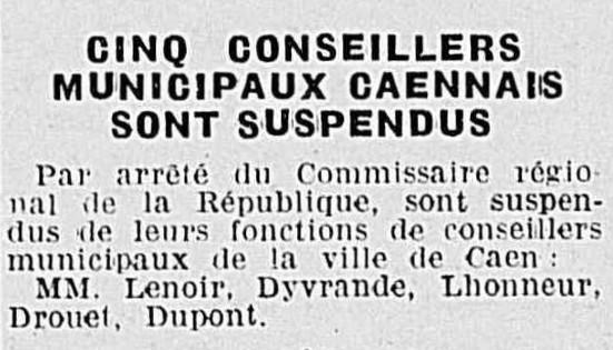 Caen, révoqué par Vichy en décembre 41, remplace le préfet Michel Cacaud