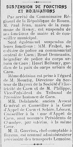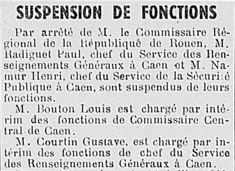 Paul Radiguet, chef du service des RG et Henri Namur, chef de la Sécuirité Publique sont suspendus de leurs fonctions. Ils sont remplacés par intérim par Gustave Courtin et Louis Bouton.