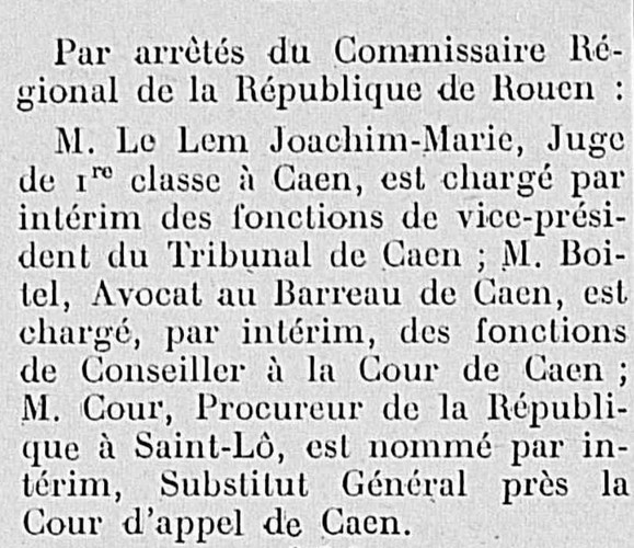 (condamné le 7 septembre 1945 par la cour de Justice de Quimper, il est relevé