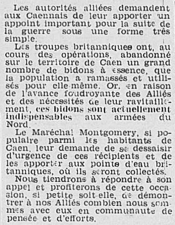 Le 9 juillet, libération de la rive gauche de l'Orne.