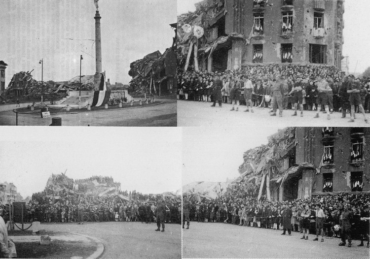 Deux films NARA 111-ADC-6327 et 111-ADC-6328 tournés les 29, 30 août et 1 septembre 1945: la vie dans les ruines et les baraquements en bois. Films tournés par l’UNRRA qui est l'Administration des Nations unies pour le secours et la reconstruction (UNRRA) un organisme chargé d'entreprendre la reconstruction de l'Europe à la fin de la Seconde guerre mondiale, à l'origine avec un plan d'aide de 3,5 milliards de dollars, jugé insuffisant, qui laissera place au plan Marshall en 1947. Un article de presse du 31 juillet 1944.