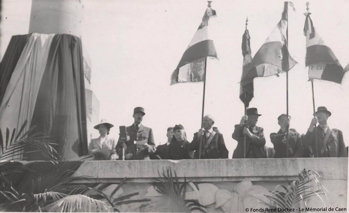 Collection Fonds René Duchez. A l'extrême gauche Mme Odette Duchez., puis Koenig sur le Monument aux morts.