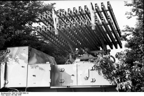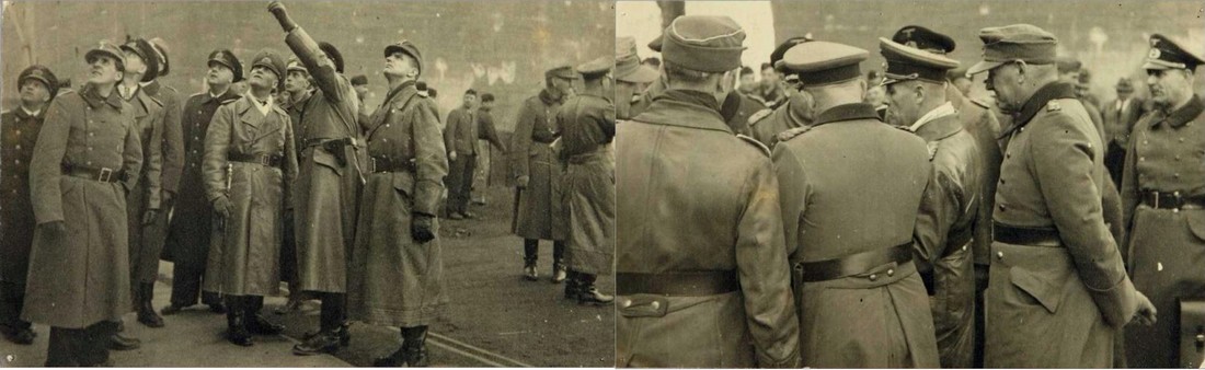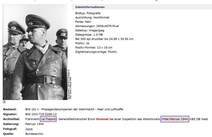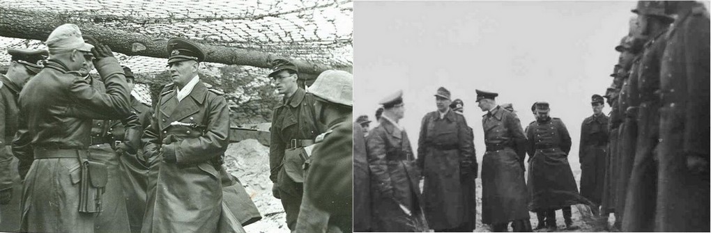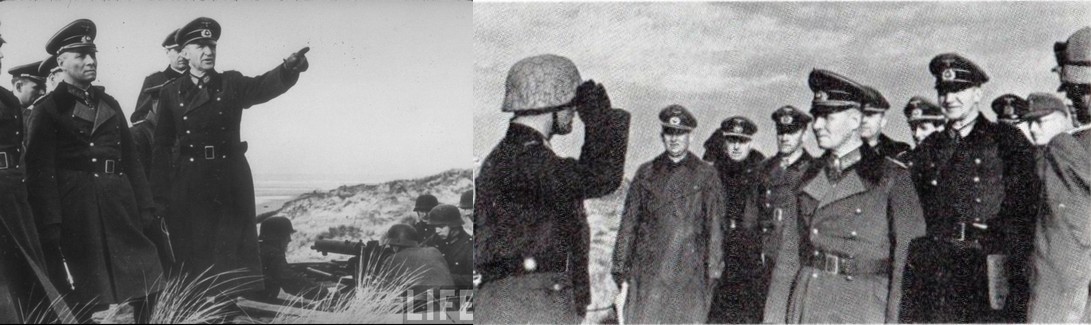 Source à gauche. Le 5 décembre 1943, Radar Freya de la Luftwaffe, Büffel Stellung à Blåvand au Danemark, Le Lt Pleines de la Luftwaffe avec Rommel. Source à droite.