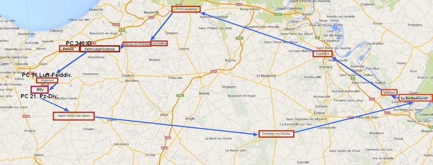 23 juillet - A 5 heures du matin, une ambulance prend le maréchal Rommel à Bernay pour le transporter à l'hôpital du Vésinet, sur la rive droite de la Seine, à l'est de Saint-Germain. Le trajet dure trois heures et demie.