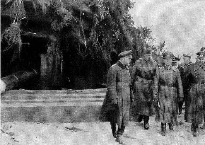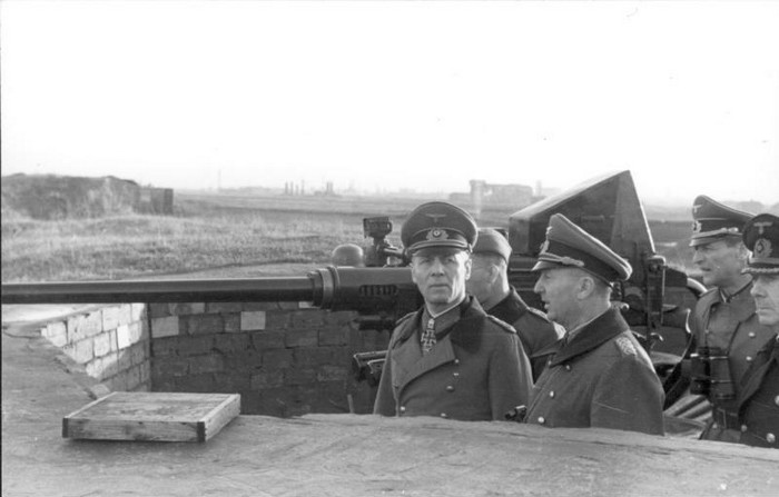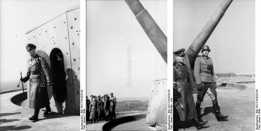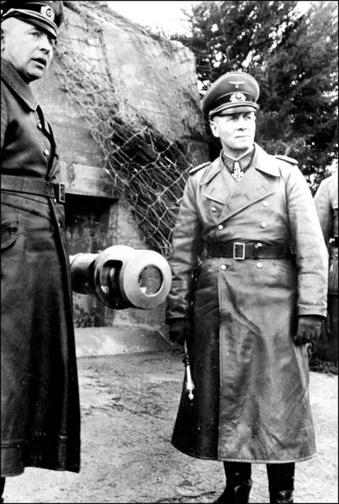 Source. Rommel et le Korvettenkapitän Dietrich Knippenber à la batterie de Hanstholm