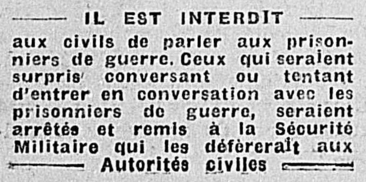 Il n’a pas été maltraité et n’a constaté aucune maltraitance. Les prisonniers n’avaient pas de marquage dans le dos de leur vêtement. Il n’a jamais eu de relations avec des civils français mais précise-t-il pas d’animosité constatée, lorsqu’il circulait pour aller travailler. Il se rappelle avoir été emmené, un jour, en camion, pour aménager un camp de femmes allemandes: auxiliaires, infirmières, etc…: creusement des trous sous les tentes pour améliorer le « confort ». Par la suite, ils ont collecté dans le camp, les pansements de premier secours qu’ils avaient cousus dans le bas de leur veste, dans le but de les donner aux femmes qui étaient totalement démunies lorsqu’elles avaient leurs règles."