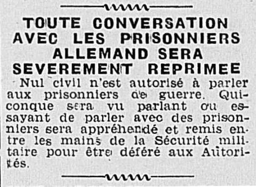 L'utilisation des P.G. de l'Axe connaît plusieurs phases dans le département. Jusqu'en mars 1945, ils sont dirigés sur les chantiers de déblaiement, à partir de mai ils sont employés au déminage et mis à la disposition des agriculteurs et des entreprises.