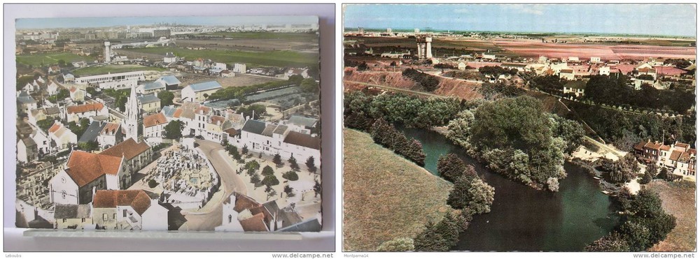 Source. Cartes postales de Fleury sur Orne, à l'opposé de la photo ci-dssus, après guerre, à gauche du château d'eau construction d'un nouveau, en arrière-plan à gauche Caen.
