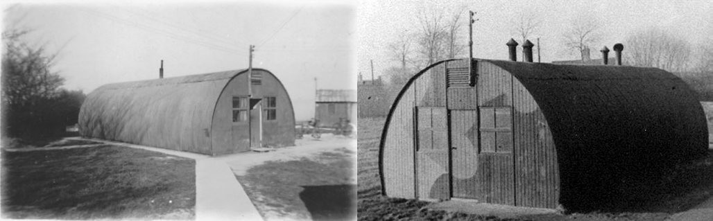 A gauche source, à droite source, deux modèles de Nissen huts.