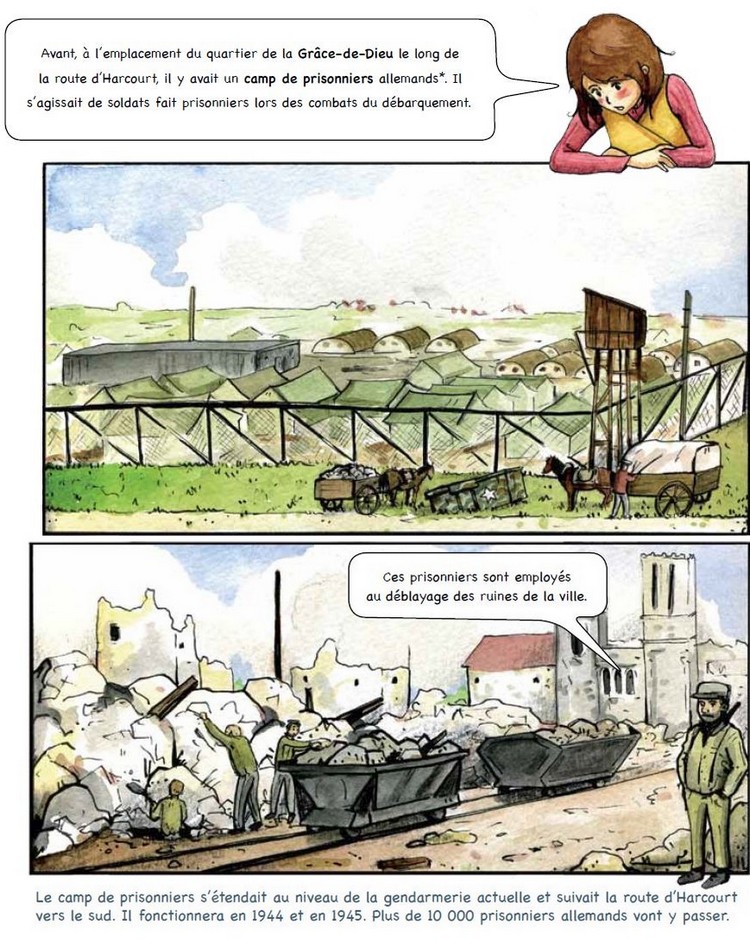 1- Le camp de prisonniers s’étendait au niveau de la Gendarmerie actuelle et suivait la route d’Harcourt vers le Sud. Il fonctionnera en 1944 et en 1945. Plus de 10 000 prisonniers allemands vont y passer. Extrait de LA GRÂCE-DE-DIEU L’histoire de mon quartier...