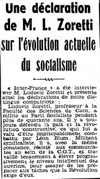 Ludovic Zoretti fut pendant l'entre-deux-guerres la figure de proue du mouvement socialiste et syndicaliste dans le Calvados, ainsi qu'un militant de premier plan de la S.F.I.O. et de la C.G.T. au niveau national.