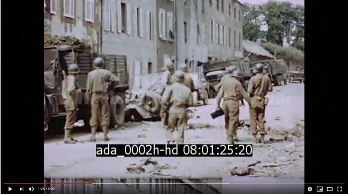 1 :02 on devrait voir à gauche le char Stuart déchenillé IL N’EST PAS LA !