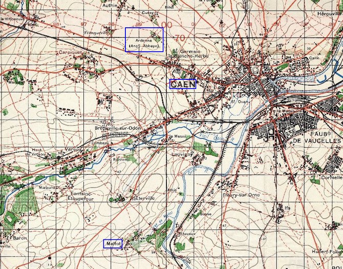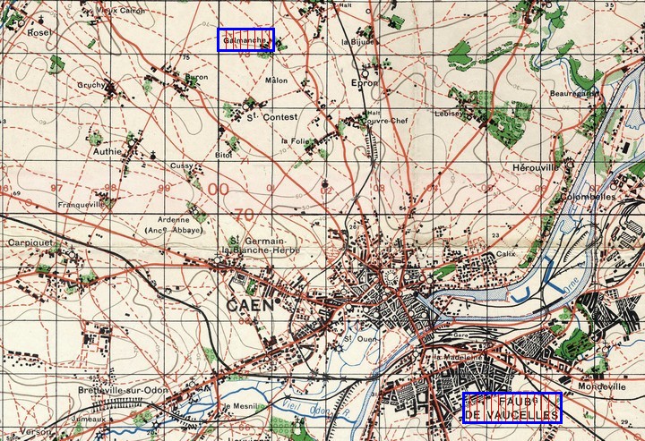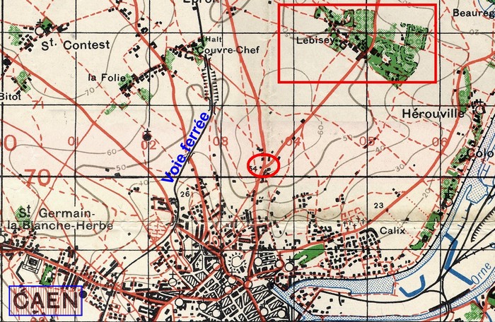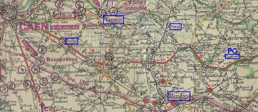 et réparti dans les régions de : Hotot-en-Auge, Troarn, Cagny, Mézidon, tandis que le PC est établi à "Les Auvres" (2.5 km au sud de Cambremer).