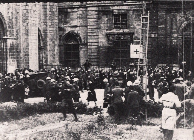 Tout au long de la semaine des blessés sont amenés au Centre. Les salles du 1er étage, auprès de la salle d'opération sont entièrement occupées. Nous installons deux autres celliers au sous-sol, les blessés sur des matelas. Les religieuses sortent tous leurs draps, elles lavent le linge comme elles peuvent avec l'eau des citernes.