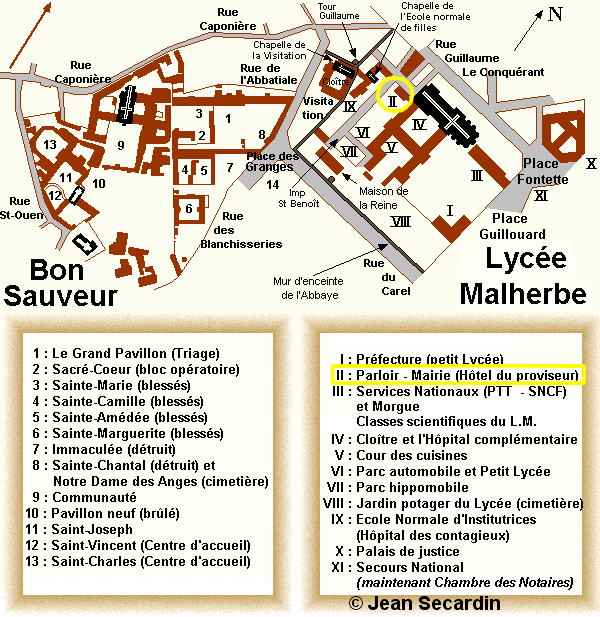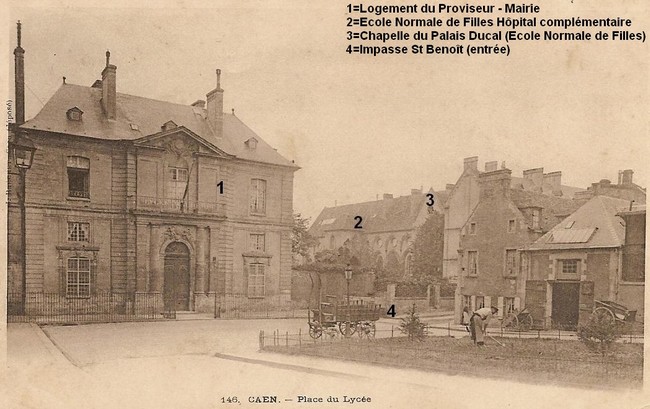Photo prise du balcon du Parloir du Lycée Malherbe (voir photo ci-dessus) A droite photo Roger Tesnière.