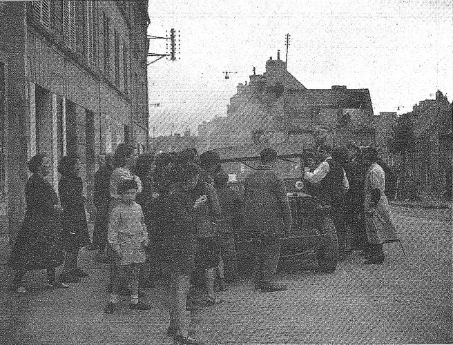 L'officier S.S. les remercia chaleureusement. Chatelain en profita pour lui demander que les S.S. ne nous volent pas notre dernière ambulance et nous laissent tranquilles remplir notre service. Surtout il avait pu constater ce qu'il voulait savoir, la rue de Vaucelles et la rive de l'Orne étaient vides de tout soldat allemand. Jour après jour, les blessés sont évacués vers GIEL. La vie est difficile dans cette immense bâtisse. Les S.S. sont toujours là, souvent ivres, et de temps en temps, balancent des grenades n'importe où. Nous les voyons incendier plusieurs maisons dans le quartier.