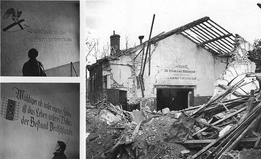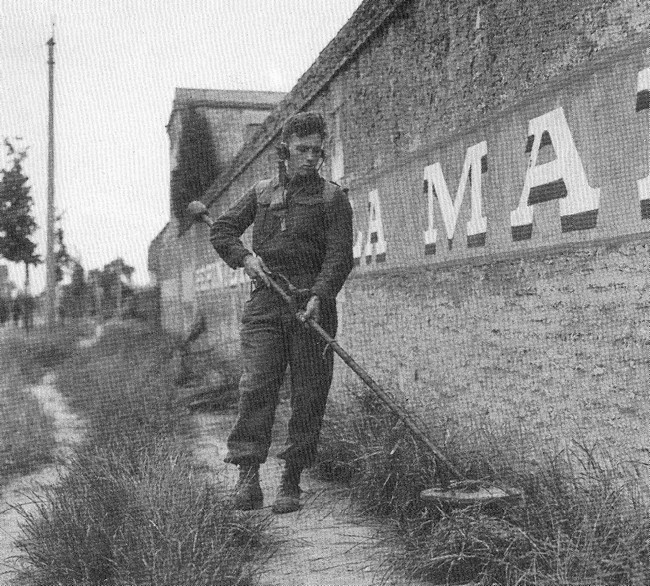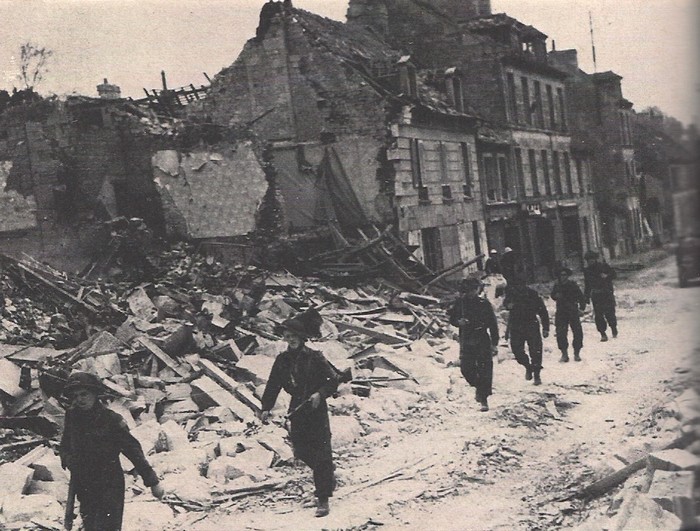 Les S.S. continuent leurs tranchées, font couper les arbres fruitiers qui gêneraient leurs tirs et bouchent les soupiraux des grandes caves avec des sacs de sable.