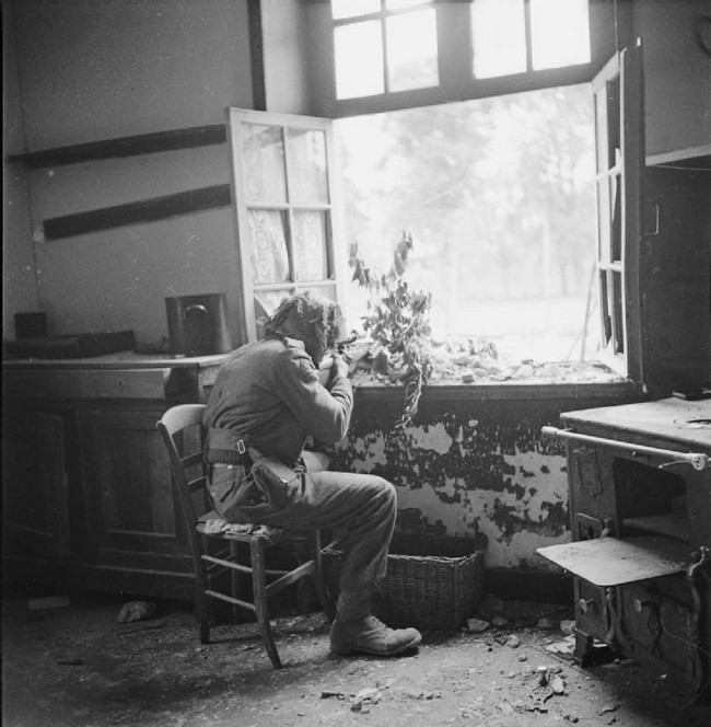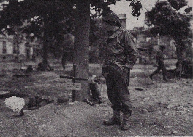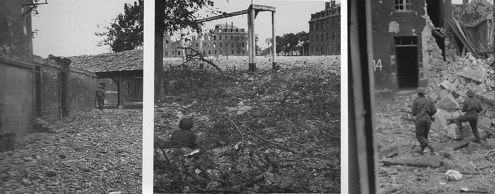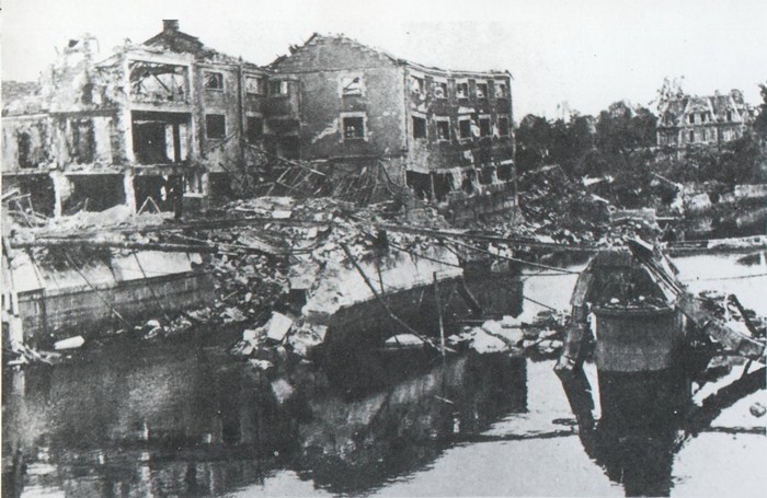 Le blessé, un S.S. très décoré, était au fond d'un trou de bombe près du pont de Vaucelles. Chaque fois que les Allemands tentaient d'aller le ramasser, les soldats leur tiraient dessus de la rive d'en face.