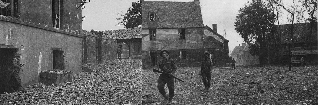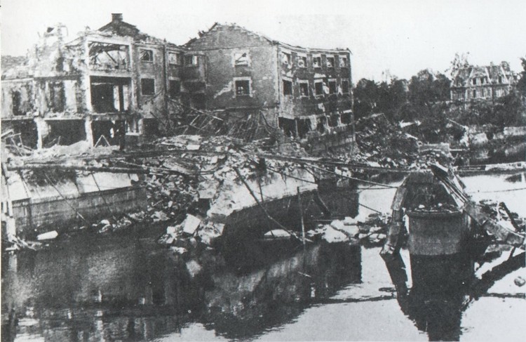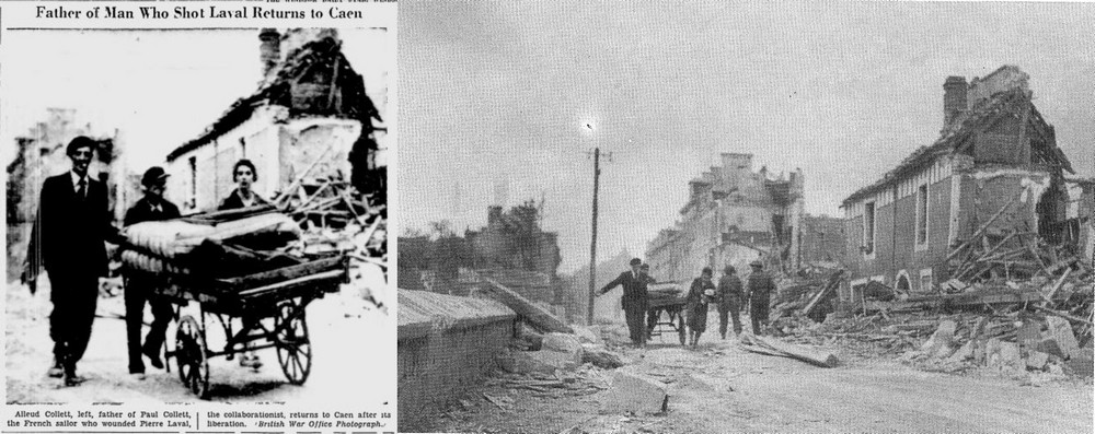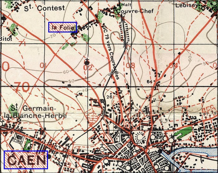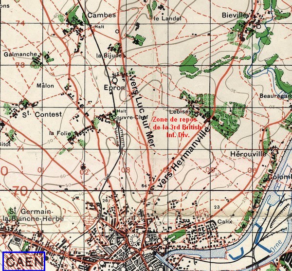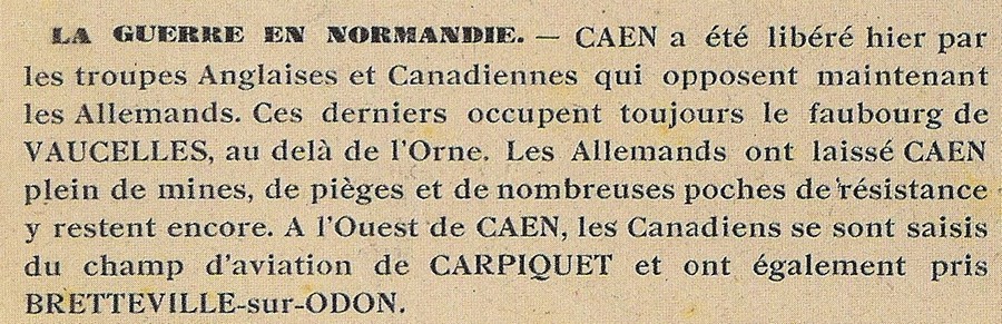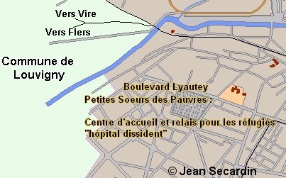 Apparemment, il n'y a plus de S.S., ni dans Vaucelles, ni aux Petites Sœurs des Pauvres. Chatelain, Detolle et Queudeville, franchissent l'Orne sur une poutrelle qui subsistait après la destruction du pont de chemin de fer (Note de MLQ: sur les rails du tramway du pont de Vaucelles). Ils passent sur la rive gauche.