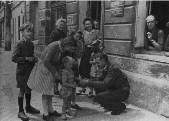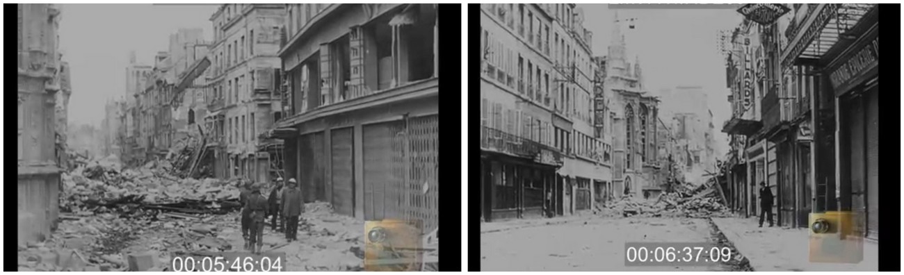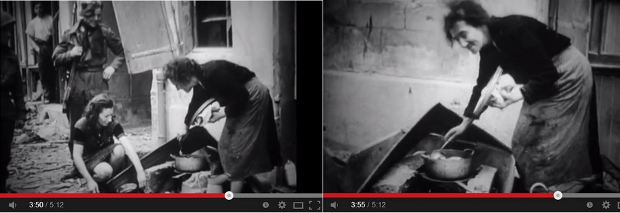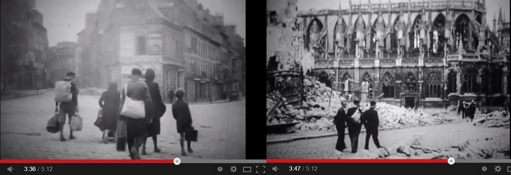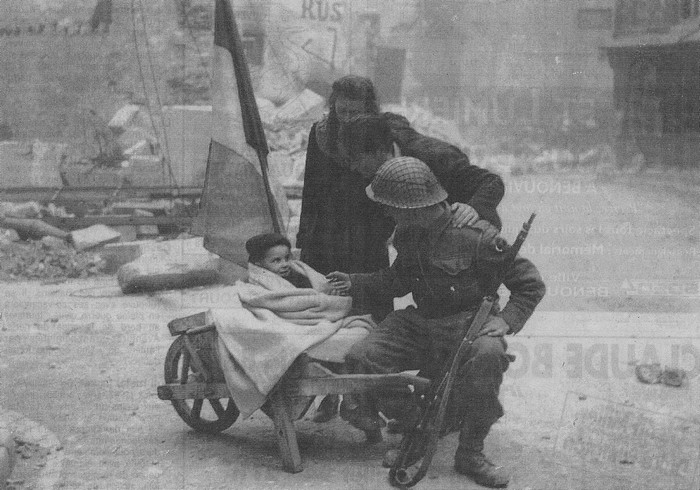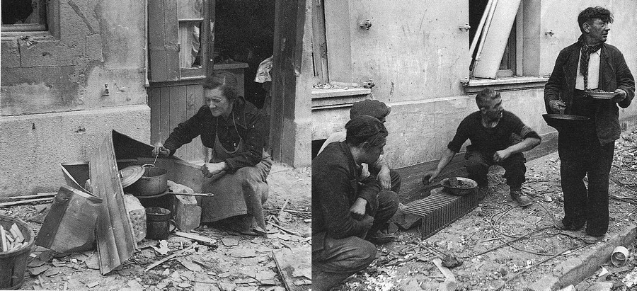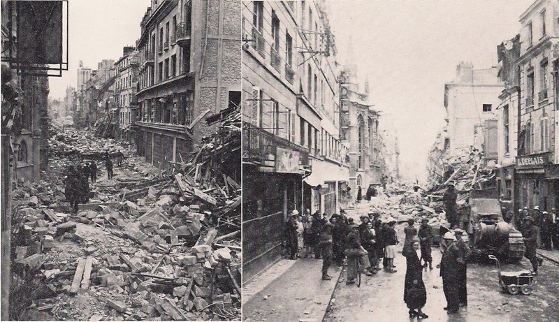 « Pour nous garantir des éclats, nous construisons alors un bon parapet devant l'entrée de notre grotte. Par crainte des tirs d'artillerie anglaise, les Allemands nous interdisent d'allumer du feu. Durant cette période, nous allons nous ravitailler à l'îlot du boulevard de Rethel. Le mari de l'épicière a été tué ainsi que la femme de ménage. Nous avons dans notre groupe un bébé qui a été nourri tant bien que mal avec de l'eau de cuisson de pâtes pour toute alimentation. Au prix de difficultés sans nom, je me débrouille pour trouver du lait. Il m'arrive aussi, un jour, de descendre jusqu'n la gare et d'en ramener de grandes boîtes de confitures que je récupère dans un wagon éventré. A la fin, cependant, nous n'avons plus grand-chose à manger.