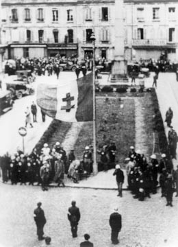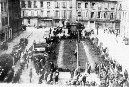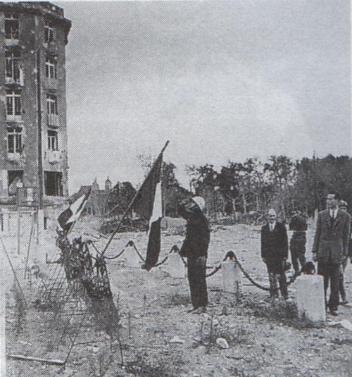 grand calvaire du boulevard Leroy. Le Préfet prononce quelques mots et nous allons saluer les braves de la