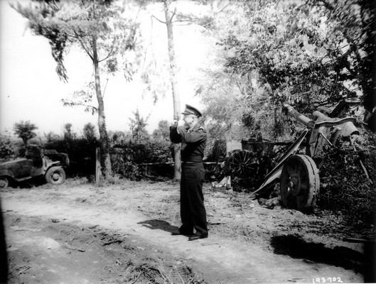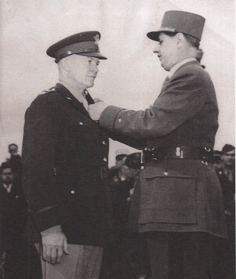 Source. Le 14 juin 1945 à Paris, Eisenhower et Koenig; Eisenhower est décoré par de Gaulle de l'Ordre de la Libération.