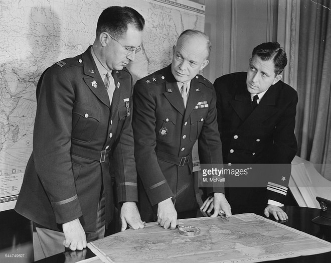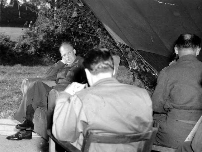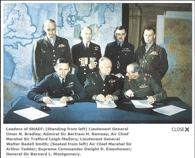Dans la nuit du 7 au 8 mai 1945, après la signature de la reddition Eisenhower reçoit dans son bureau: