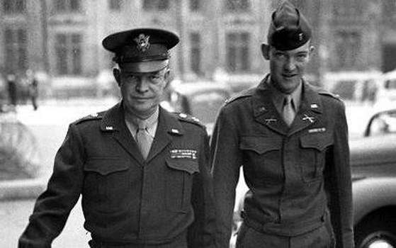 après la visite au Pentagon, Eisenhower et Bedel Smith, sur le