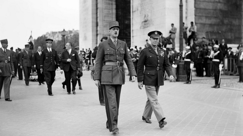 Le 14 juin 1945, de Gaulle et Eisenhower à l'Arc de Triomphe.