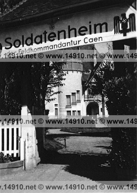 Elle contrôle également l'Orstkommandantur 630 (OK) à Caen, 9 rue Georges Lebret (1er étage) avec l'Hauptmann Schweikart; les OK sont installées dans les villes importantes où stationnent des garnisons militaires.Le tampon ci-dessous est signé de l'Hauptmann Judemmann (il est cité dans un article de journal).