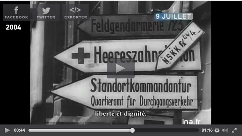 Panneau Feldgendarmerie 723, filmé le 9 juillet 1944, devant la Poste centrale place Gambetta. De nos jours.