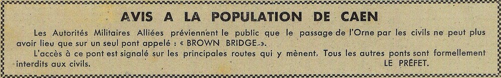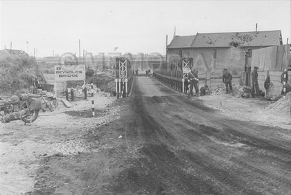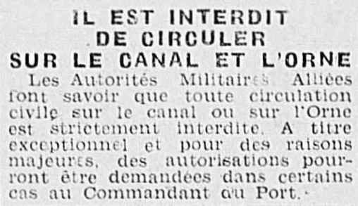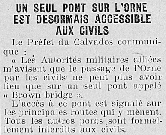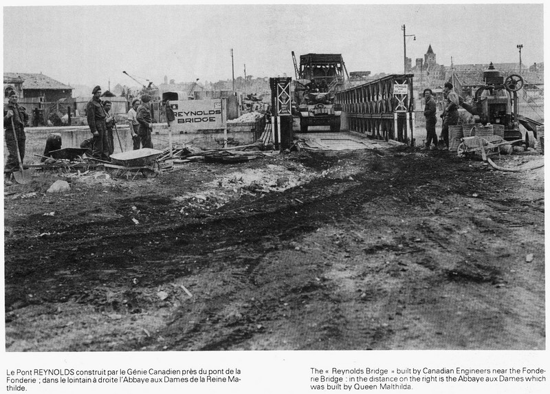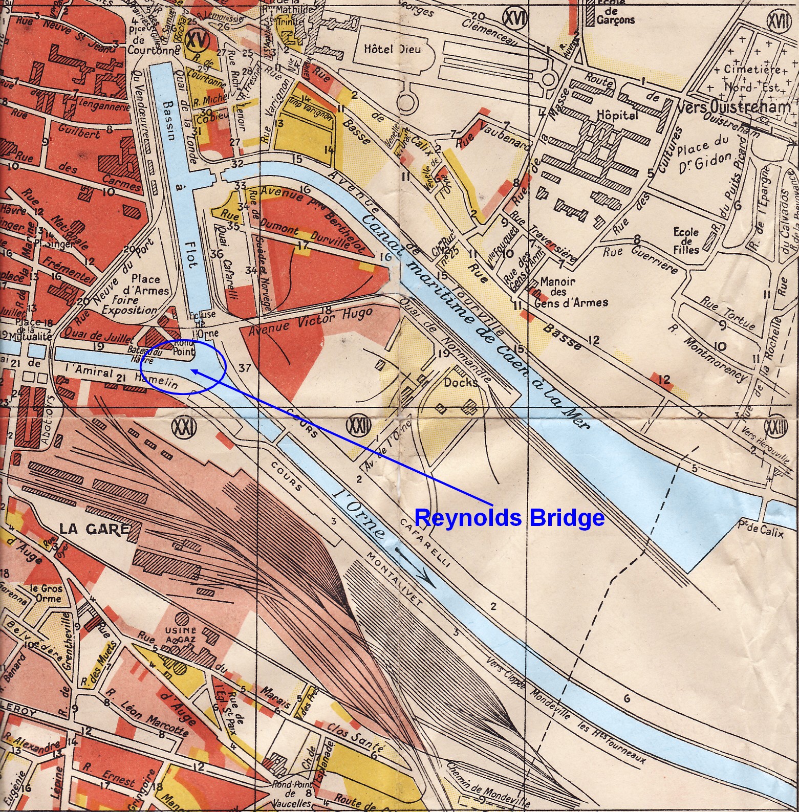 En mars 1945, parait dans "Liberté de Normandie" un article intitulé: L'accès au port de Caen est réglementé: entrée par le Layr Bridge et sortie par le Reynolds Bridge, réservés aux personnes et véhicules autorisés.