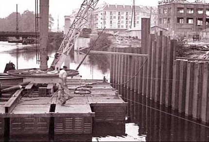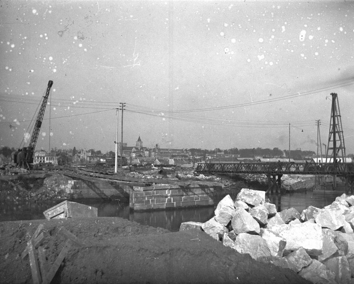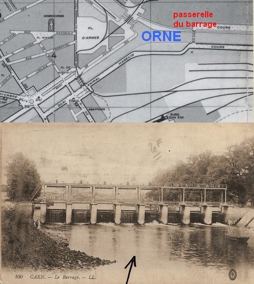 "Photo Archives municipales de Caen" le 27 août 1946 travaux sur le barrage, il sera remis en service en 1947.
