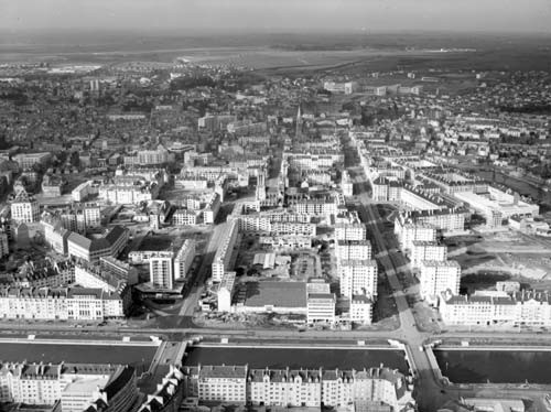 Photo aérienne de Caen, mars 1944, de haut en bas: