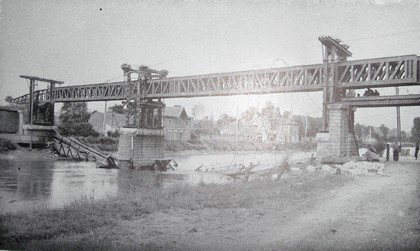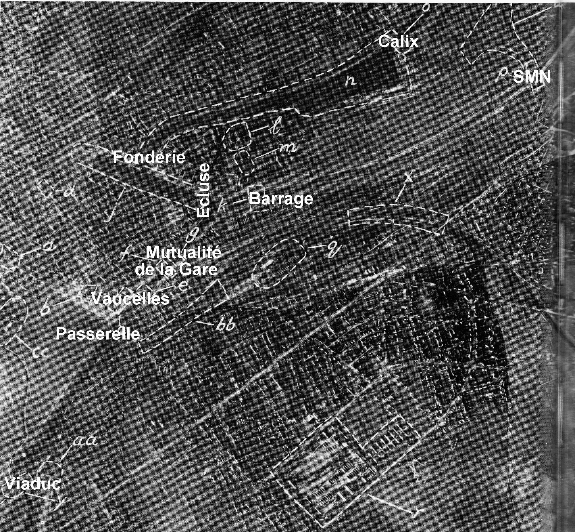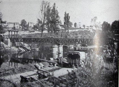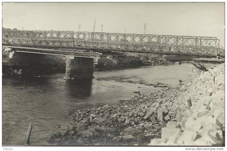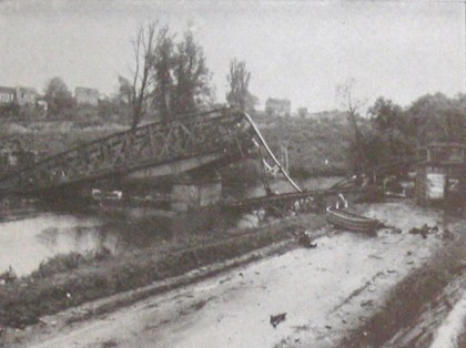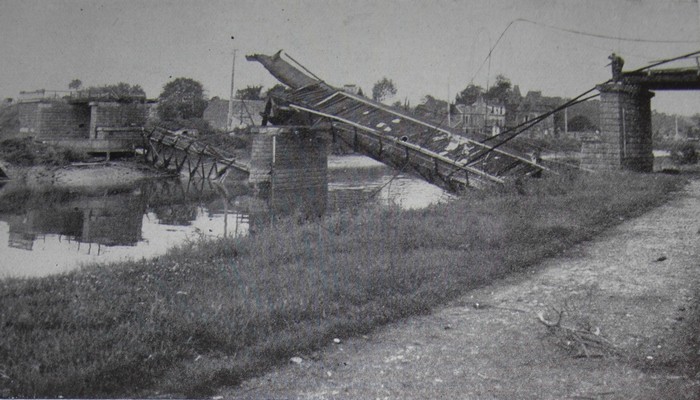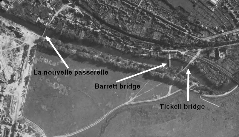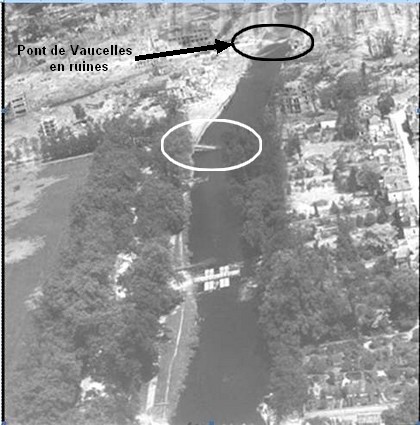 "Les Allemands ne cherchèrent pas à réparer les ponts de la Gare et de Vaucelles, inaccessibles. Ils se bornèrent à dégager les accès du pont du « tortillard » et de la passerelle qui avaient l'un et l'autre l'avantage d'être plus ou moins camouflés naturellement par les arbres.