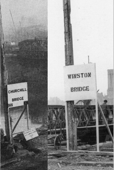 Mais j'en veux pour preuve les deux photos ci-dessous: c'est le même pont avec deux pancartes différentes Winston et Churchill, alors qu'il s'agit du Winston dans les deux cas, voir mes explications ci-dessous: