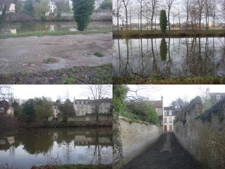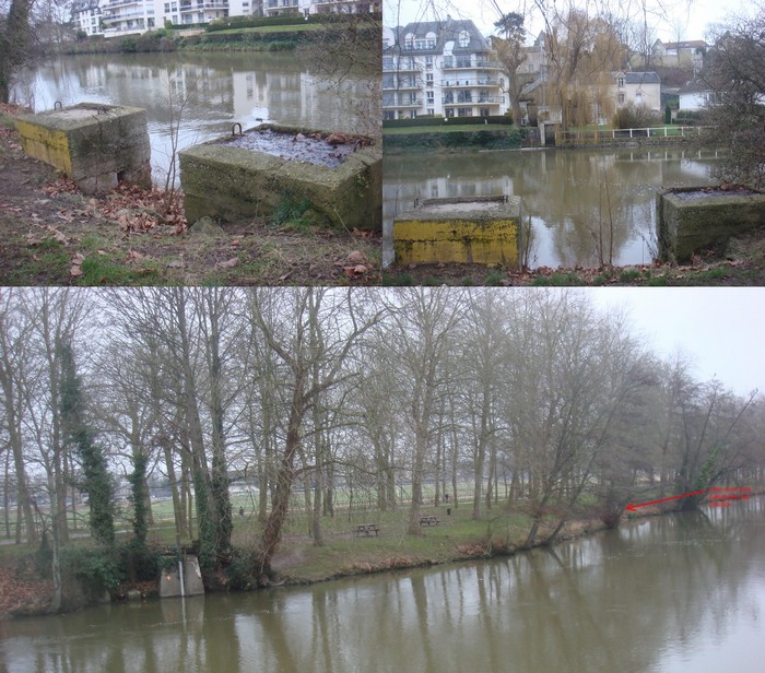 Le photographe est rive droite, photo à gauche vue amont, photo à droite vue aval avec l'église Saint Jean.