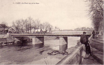 Le pont métallique de la Gare résiste mieux, mais ne peut davantage être utilisé par les voitures, les piles de maçonneries étant disloquées et le tablier percé de nombreux trous.(C'est sous ce pont que passe la tuyauterie qui alimente en eau la rive gauche de Caen)