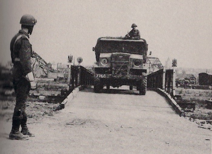 Il n'en demeure pas moins vrai que la passerelle « accepta « non seulement automobiles et chenillettes mais aussi camions de deux tonnes, sauf ceux d'un certain type... trop larges.