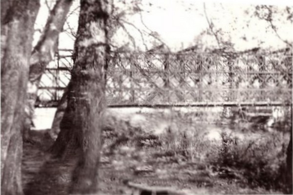 A droite: source. Le Winston bridge, le 24 juillet, le photographe est rive droite, en arrière-plan à gauche le garage Citroën et à droite l'église Saint Jean. AGRANDISSEMENT