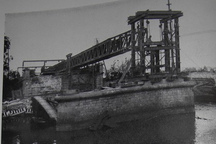 "Photo Archives municipales de Caen" le 27 août 1946 le Reynolds bridge et l'écluse du Bassin Saint Pierre.