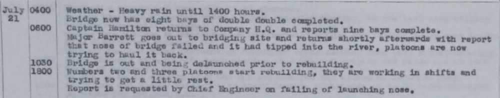 Dans les premiers jours de juillet, l'aviation alliée redouble d'activité aux alentours. Les derniers ponts sont visés. Le secteur de la passerelle devient véritablement dangereux. Des salves de fusants et de percutants y éclatent à tout bout de champ.