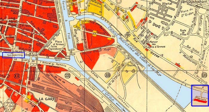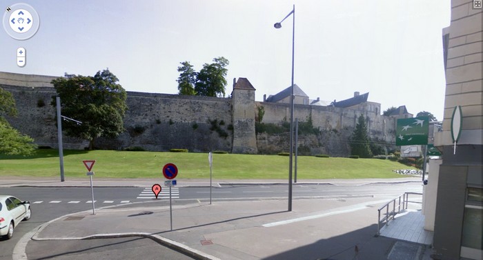 Comment sont ils passés du cimetière protestant au Bd des Alliés ? On ne peut que faire des suppositions: soit l’Est ou l’Ouest du château. Mais on retrouve une patrouille qui rencontre des civils rue des Fossés Saint Julien à 12H30 donc côté Ouest par la rue de Geôle ou plutôt par les fossés du château (plusieurs témoignages indiquent que les soldats complètement perdus dans les ruines avaient pris les fossés pour une rue !).