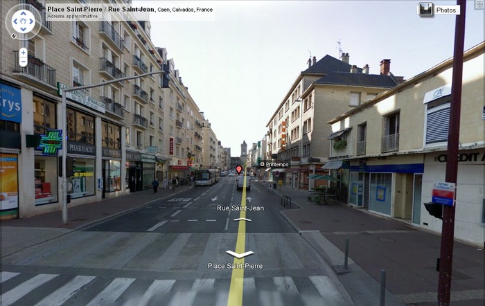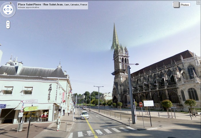 Vers 11 heures. des Panzern se mettent en position Place des Petites-Boucheries, l'un prenant en enfilade la rue de Bayeux, l'autre la rue Caponière. Quelques mitrailleuses s'y ajoutent... les dernières arrière-gardes. Vers midi, elles se retirent à leur tour.