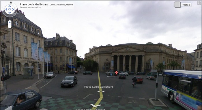 "Archives départementales du Calvados". Bd des Alliés vu du théâtre municipal.